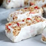 Chewy Strawberry Granola Bars | Yogurt Coating from Nicole Hunn at Gluten Free on a Shoestring. Keep up with the latest updates for this recipe online at https://glutenfreeonashoestring.com/yogurt-coated-gluten-free-chewy-strawberry-granola-bars/ or scan the QR code below.